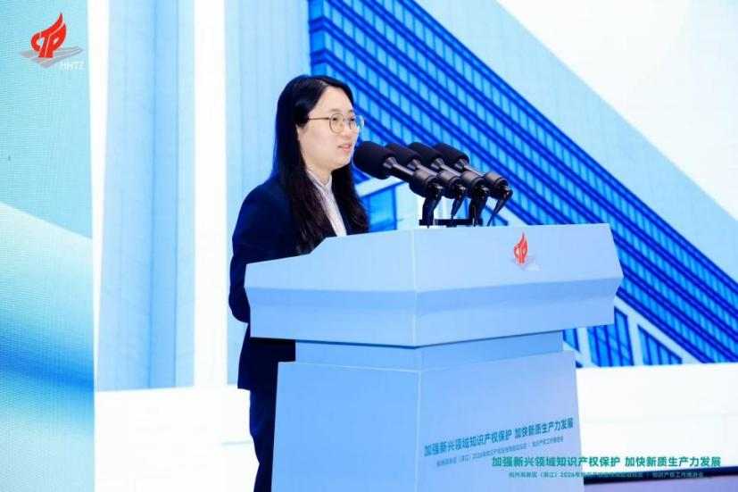 2026年4月21日,杭州高新区(滨江)2026年知识产权宣传周启动仪式暨知识产权工作推进会在智慧E谷举行。本次活动以“加强新兴领域知识产权保护 加快新质生产力发展”为主题,来自政府、企业、高校、知识产权服务机构的代表齐聚一堂,共同见证区域知识产权事业迈入“提质增效、闭环发力”的新阶段。浙江省市场监督管理局(知识产权局)知识产权保护处处长石增根,杭州高新区(滨江)党委副书记、管委会副主任、滨江区人民政府副区长周挺,杭州高新区(滨江)市场监管局党委书记、局长姜黎等领导出席活动。